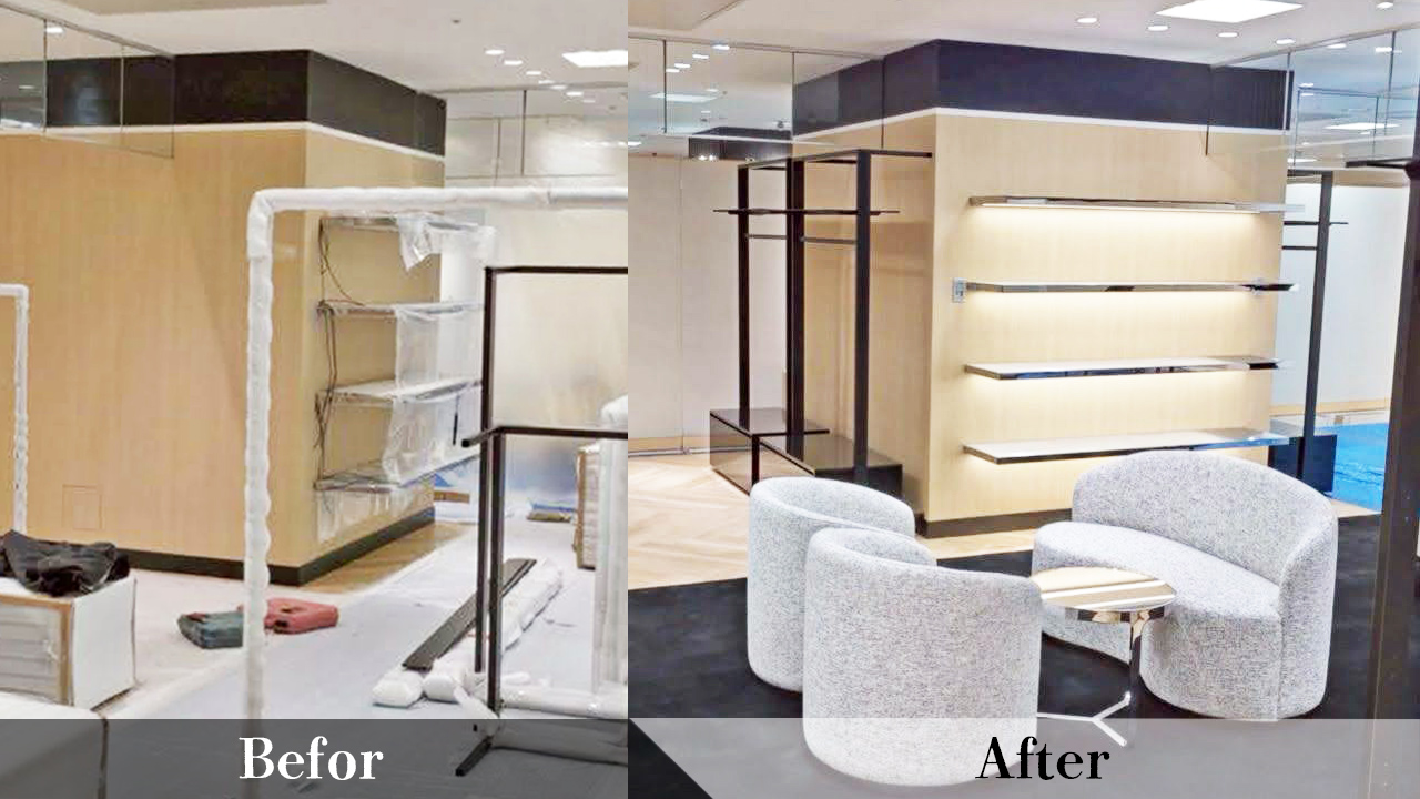 BOSS様のブランドコンセプトに合わせ、モダンで洗練された雰囲気の中にも、居心地の良さを感じさせる空間に仕上がりました!
